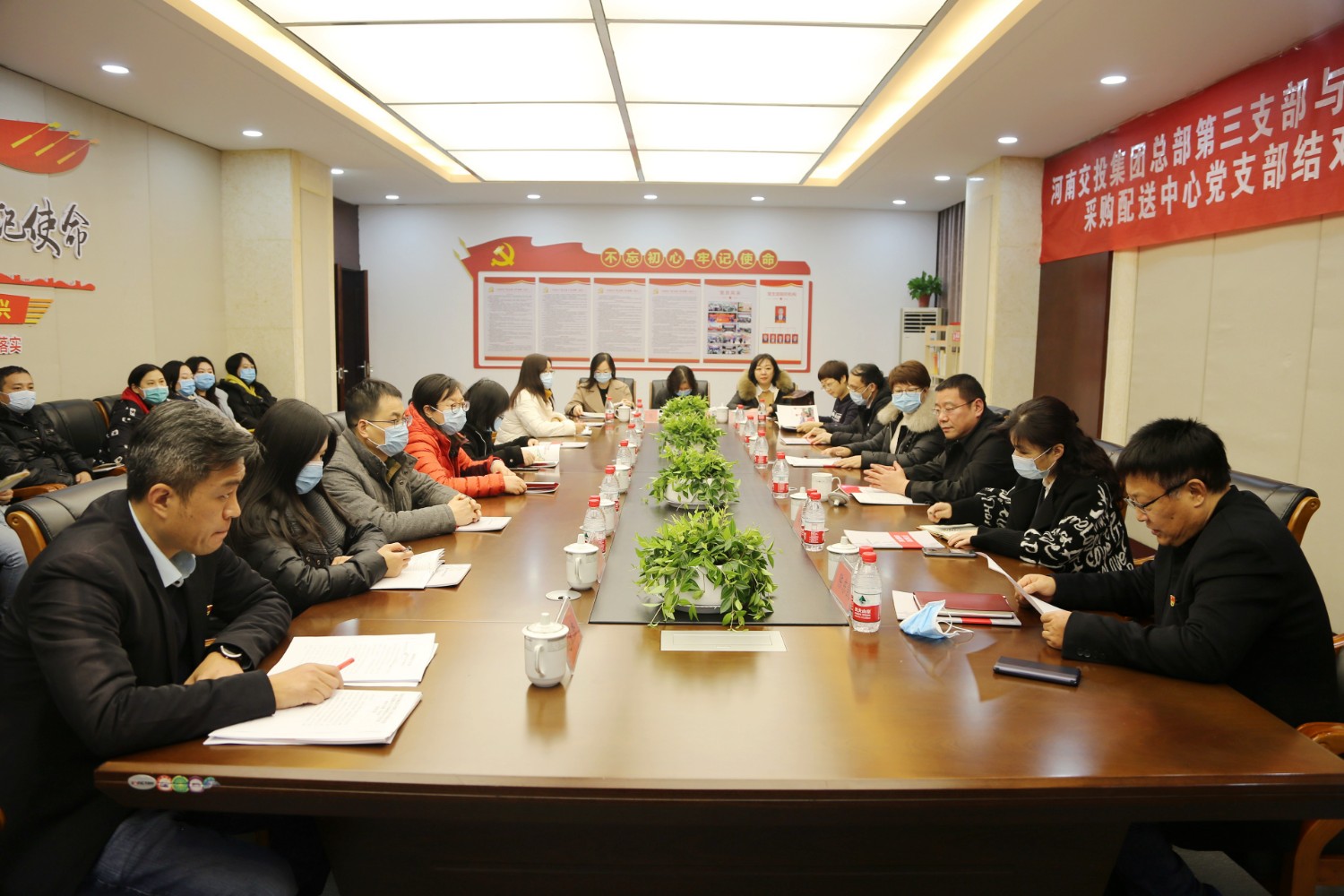 12月18日,集團(tuán)總部第三支部全體黨員與直屬分公司采購(gòu)配送中心黨支部、財(cái)務(wù)資產(chǎn)部黨支部全體黨員在鄭州北服務(wù)區(qū)開展了“支部結(jié)對(duì)子,黨員手拉手”活動(dòng)。通過黨建活動(dòng)加強(qiáng)集團(tuán)部門和基層單位業(yè)務(wù)溝通,以專業(yè)化、高效化管理促進(jìn)步,為集團(tuán)發(fā)展做出新貢獻(xiàn)。參會(huì)人員在黨建活動(dòng)室觀看了采購(gòu)配送中心黨支部黨建視頻,聽取了黨支部工作開展情況匯報(bào)及支部黨員“感動(dòng)集團(tuán)人物”武紅軍同志先進(jìn)典型事跡匯報(bào)。隨后,參會(huì)人員從支部建設(shè)、日常工作等方面進(jìn)行面對(duì)面座談。