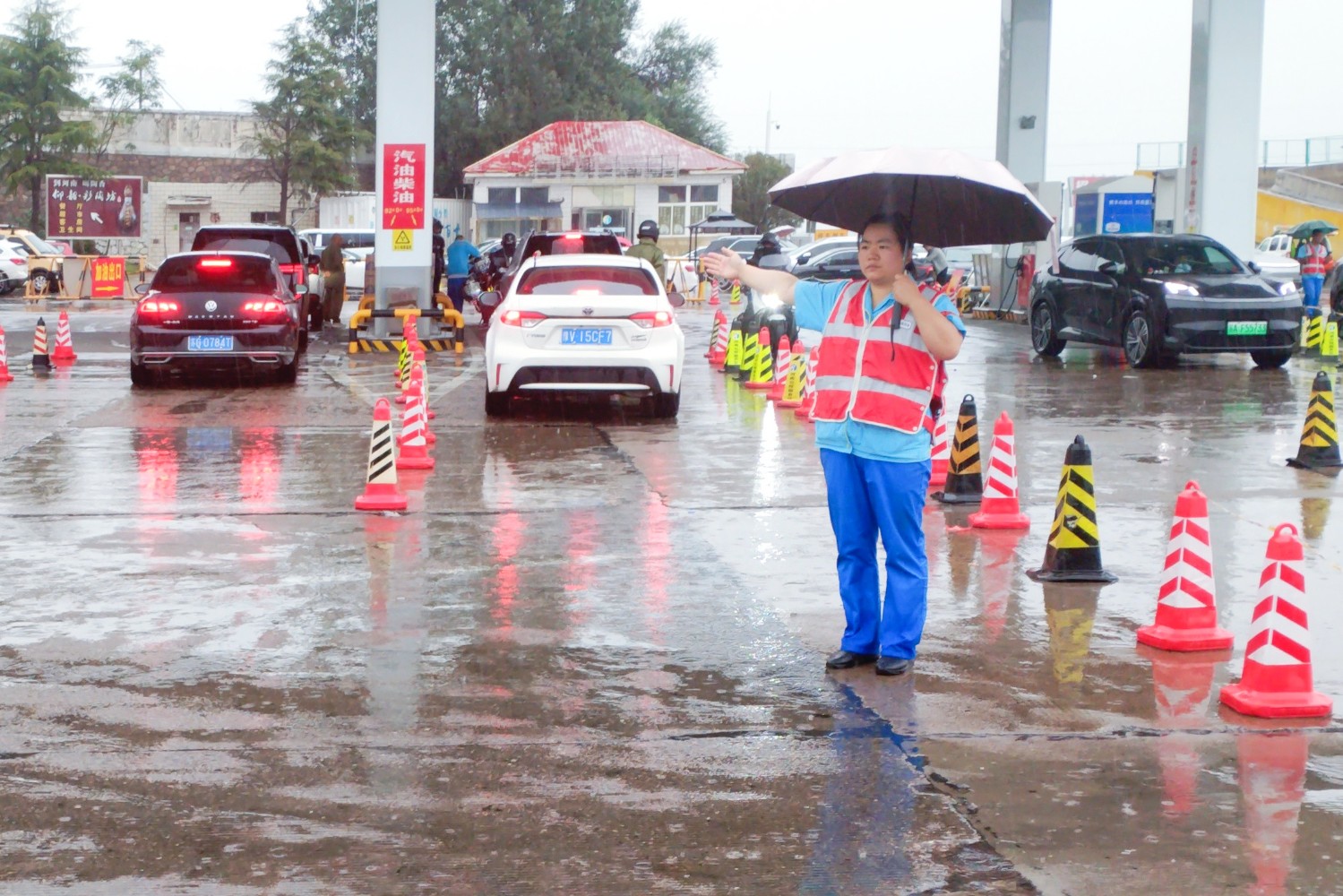 “享充電加油暢”——雙節(jié)”前夕,公司新增超充槍300余把,所轄服務(wù)區(qū)運(yùn)營充電槍達(dá)3912把(其中超充槍439把)。雙節(jié)期間,針對(duì)新能源車輛充電需求劇增這一情況,公司提前研判,積極采取措施,與充電設(shè)施運(yùn)營單位加強(qiáng)溝通對(duì)接,強(qiáng)化值班值守,提高快速響應(yīng)及服務(wù)保障能力,并在漯河服務(wù)區(qū)和重陽服務(wù)區(qū)各備戰(zhàn)2臺(tái)(共4臺(tái))移動(dòng)充電車,隨時(shí)調(diào)度使用。服務(wù)區(qū)增加潮汐用工,提前渠化,疏導(dǎo)交通,加強(qiáng)充電車輛有序引導(dǎo)。同時(shí),各加油站準(zhǔn)確把握油品庫存及銷售情況,及時(shí)優(yōu)化組織調(diào)度、確保假期油品保供不脫銷、不斷檔。