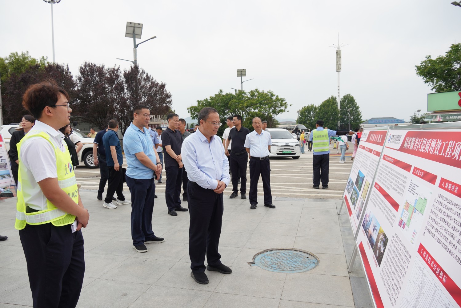 關(guān)健總經(jīng)理現(xiàn)場查看了服務(wù)區(qū)廣場、節(jié)水驛站展廳、觀景臺、戶外休閑區(qū)等區(qū)域,隨后召開提質(zhì)增效座談會。