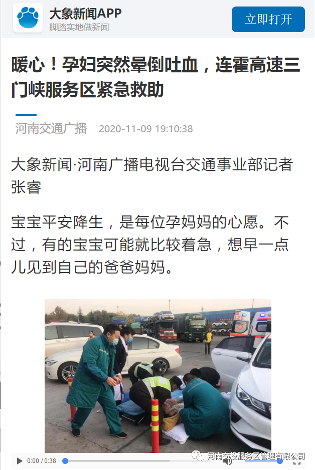 大象新聞、河南交通廣播電臺(tái):暖心!孕婦突然暈倒吐血,連霍高速三門(mén)峽服務(wù)區(qū)緊急救助