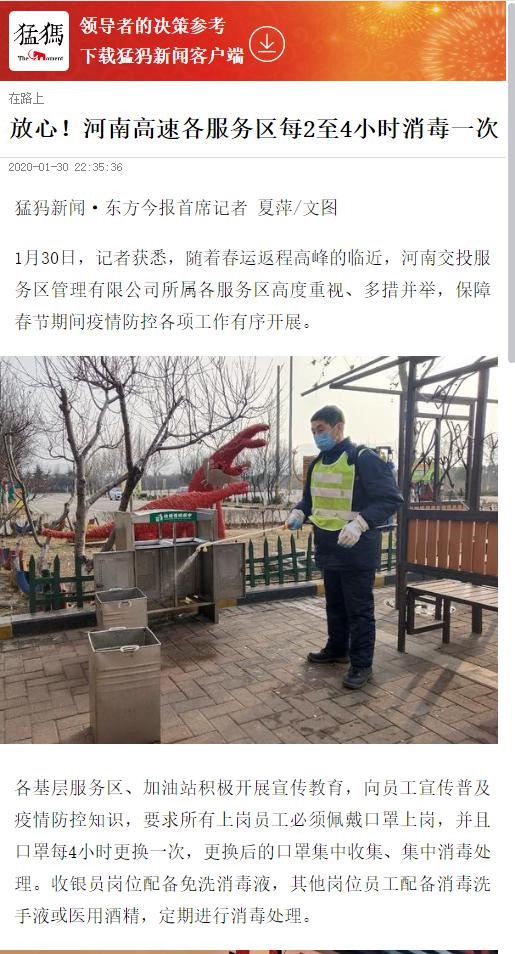 猛犸新聞:《放心!河南高速各服務區(qū)每2至4小時消毒一次》