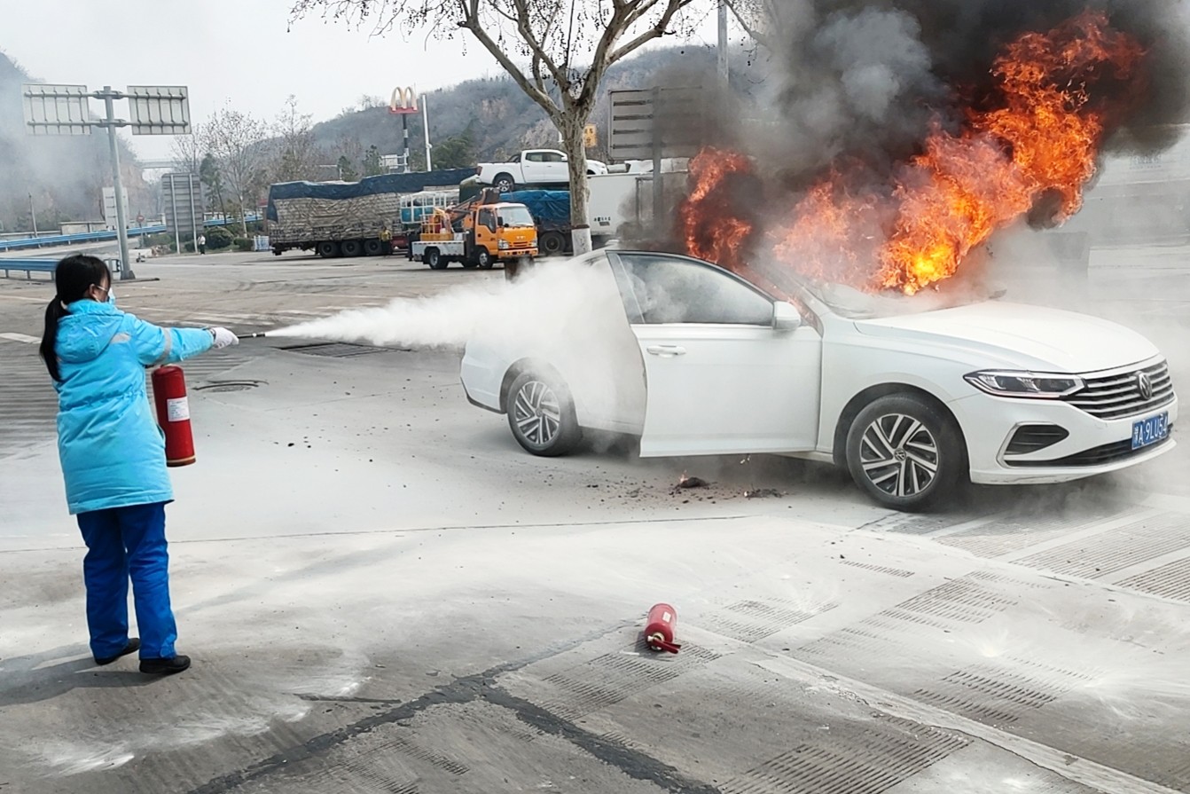 小轎車自燃 鞏義服務(wù)區(qū)、加油站緊急滅火保安全